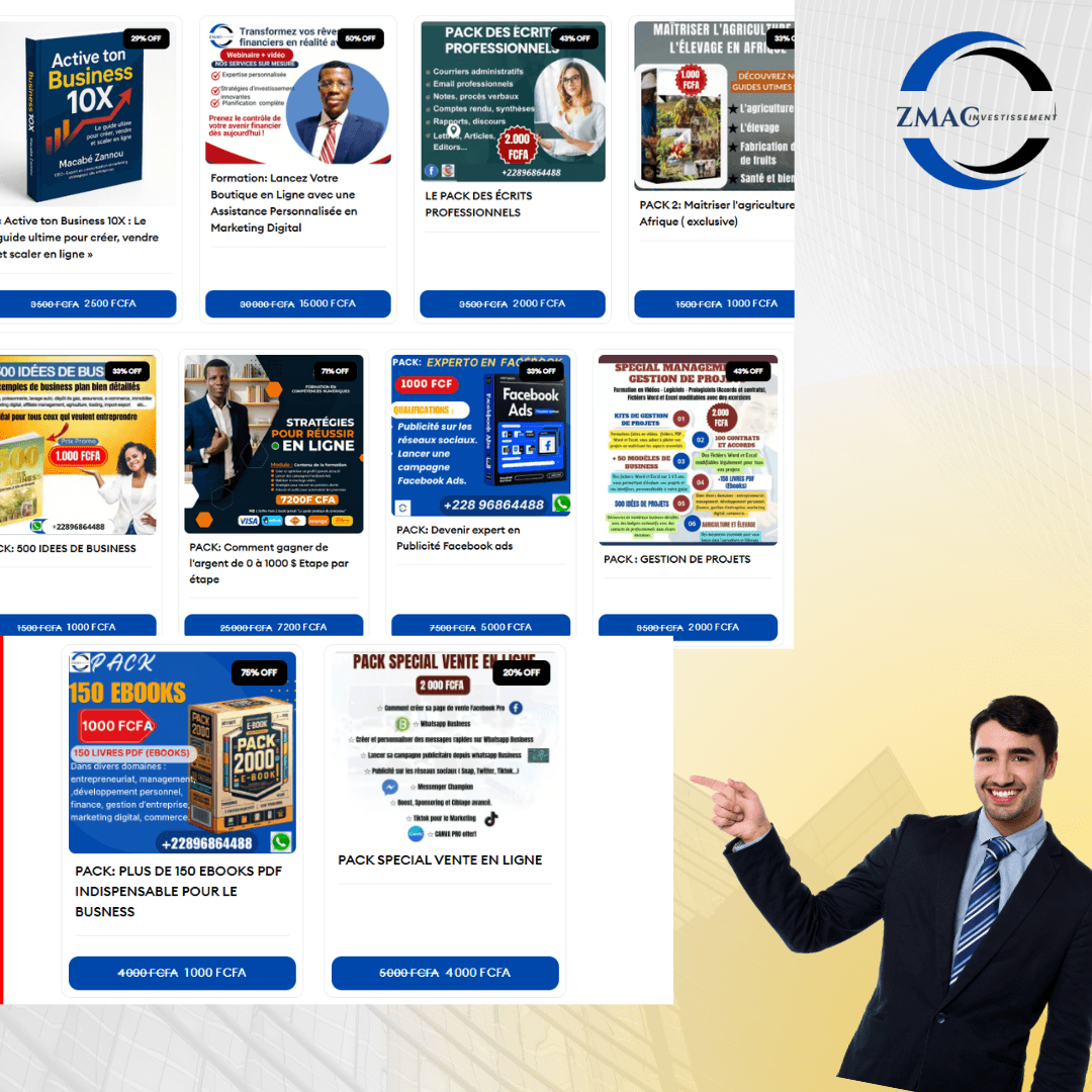 Aujourd’hui, tu obtiens le pack complet + le droit de revente pour seulement 11 000 FCFA.